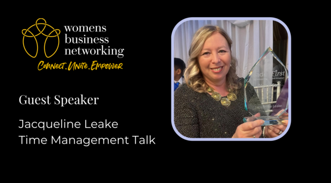 Our guest speaker for this meeting is WBN member Jacqueline Leake who will be delivering a talk on Time Management. She will be talking about how to find the right rhythm for you and your business so you can use your time productively and efficiently.